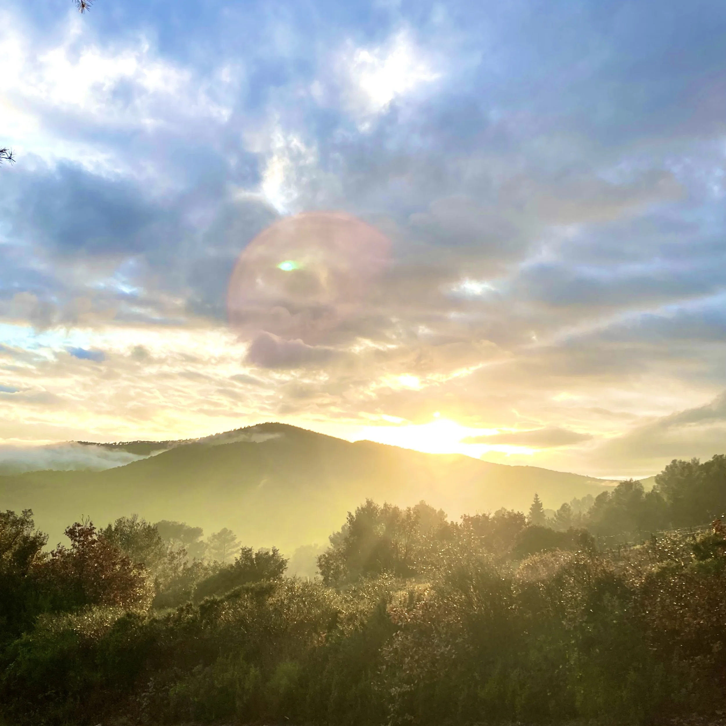 Nos pratiques se déroulent sur une terrasse ouverte sur les Maures, créant un espace de communion avec la nature environnante.
